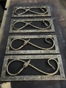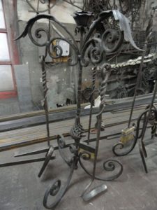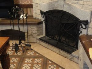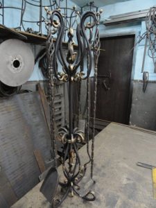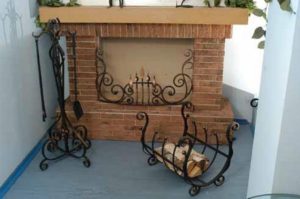 У камина — это место, где жители дома любят собираться и проводить время, т.к. там присутствует атмосфера теплоты и уюта. Чтобы создать камину изысканность и законченный вид, необходимо оформить его декоративной кованой решеткой. Ажурность решетки для камина создаст определенный стиль Вашему интерьеру, а дополнят его каминные принадлежности и дровница.