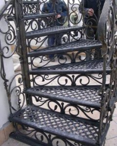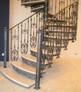 Кованые лестницы можно назвать сочетанием надёжности самой крепкой лестницы и любого изысканного рисунка её прочных кованых перил. Качественные кованые лестницы – это результат работы наших мастеров, которые всегда прилагают множество усилий для воплощения всех ваших желаний в реальность. Это превращает производство самых обычных лестниц в целое искусство, а лестницы – в прекрасные произведения искусства. Технические возможности металла позволяют изготавливать кованые лестницы или перила любой сложности (однокосоурные, двухкосоурные лестничные конструкции; винтовые, радиусные лестницы; прямые, косые, самонесущие лестничные марши). Богатый выбор красящих материалов, сочетая с декоративным патинированием, позволяют изготавливать кованые лестницы различного характера и сочетать их с цветовой гаммой интерьера Вашего дома.